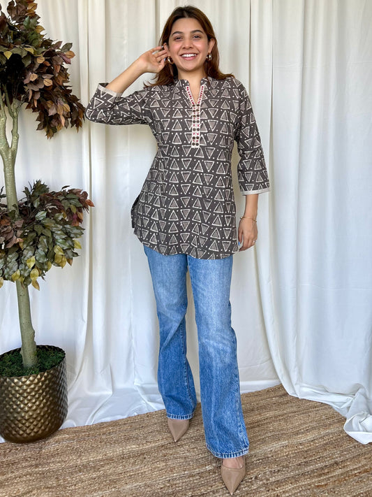 Brown Hand Block Relaxed Cotton Short TopRegular price Rs. 990.00Regular priceUnit price / perRs. 2,190.00Sale price Rs. 990.00Sale