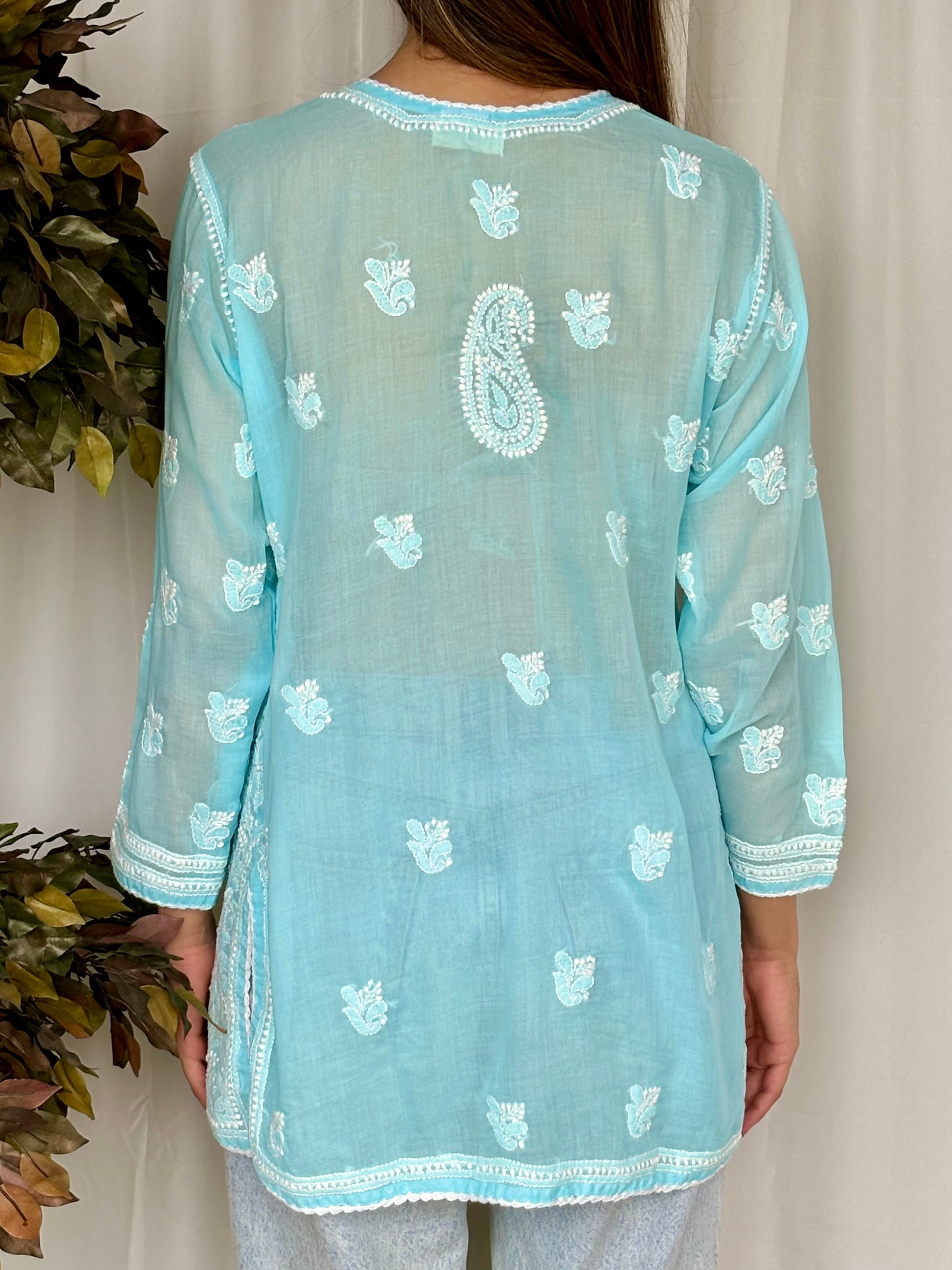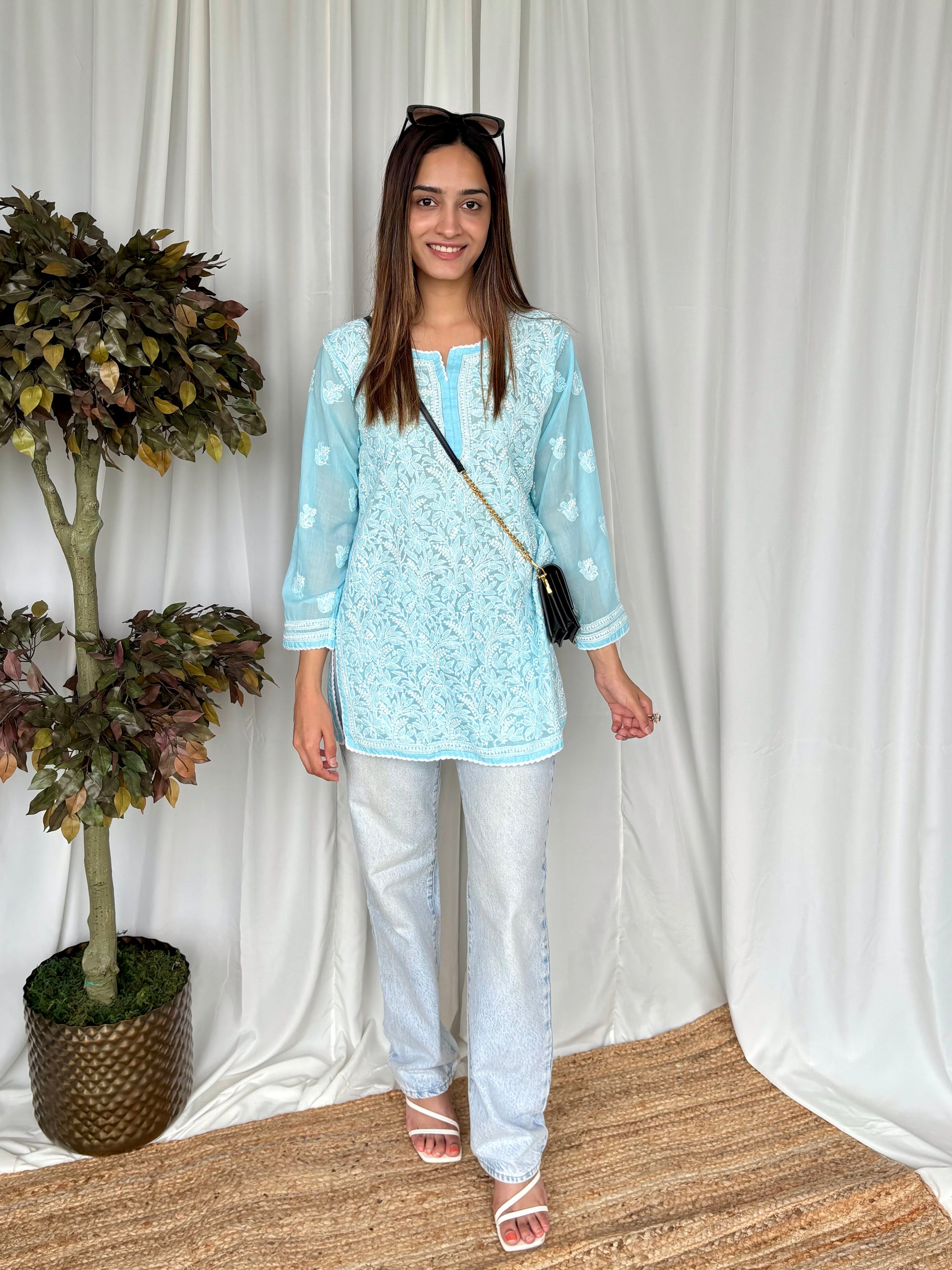 Crafted with care, our Chikankari short kurti is designed by hand to give you a unique look. Made from 100% cotton, this short top promises all-day breathability and a soft touch against your skin.