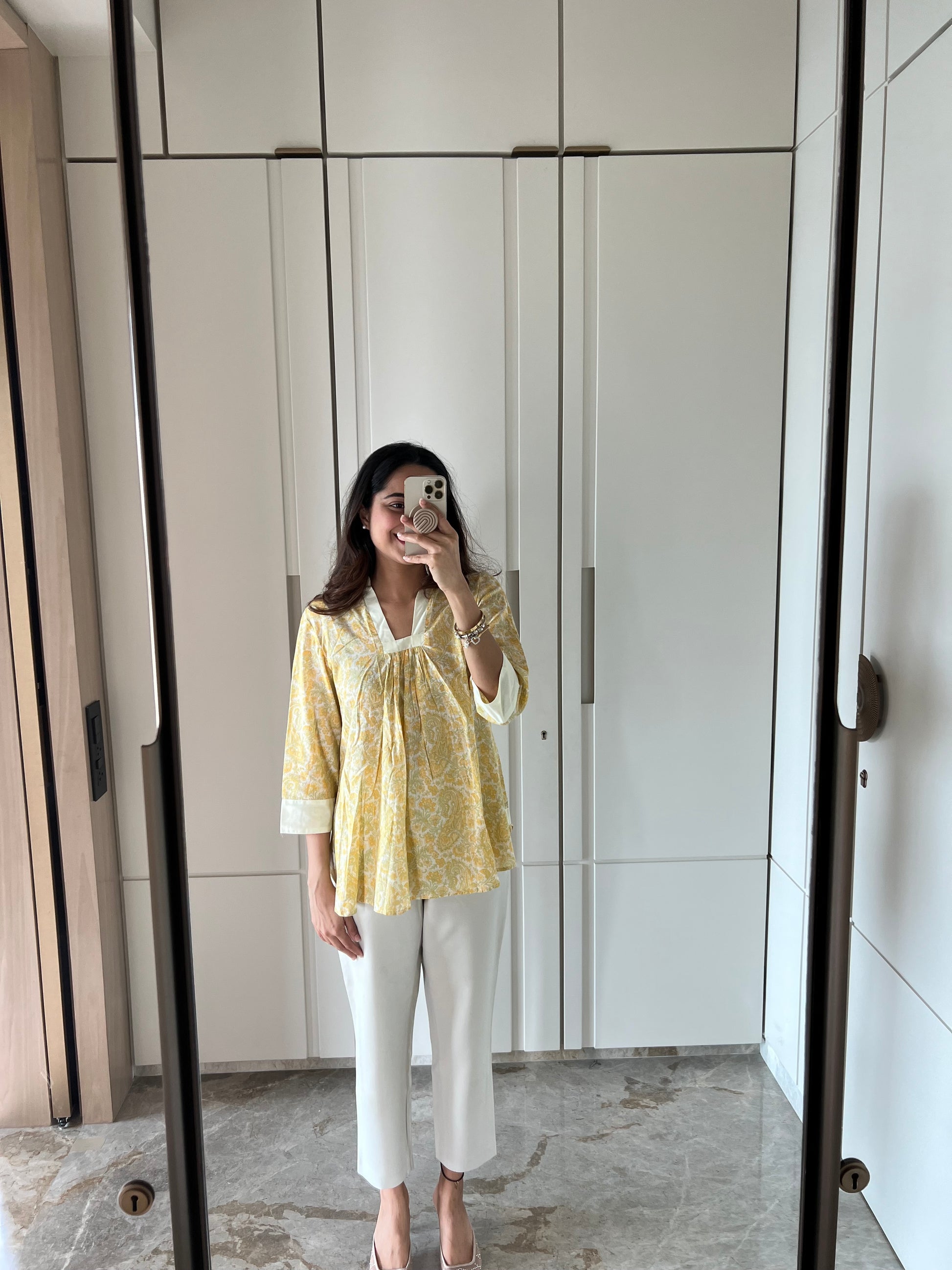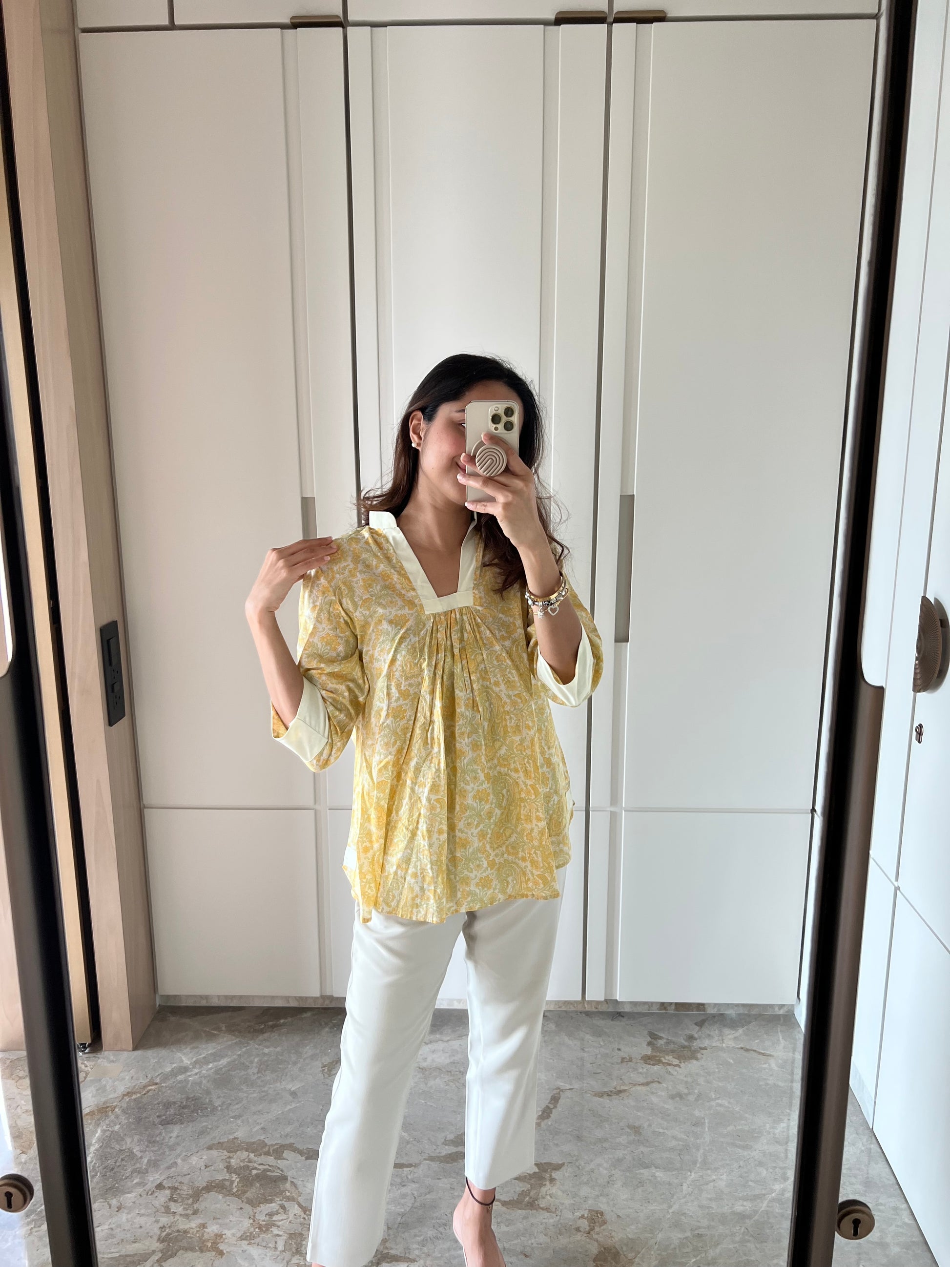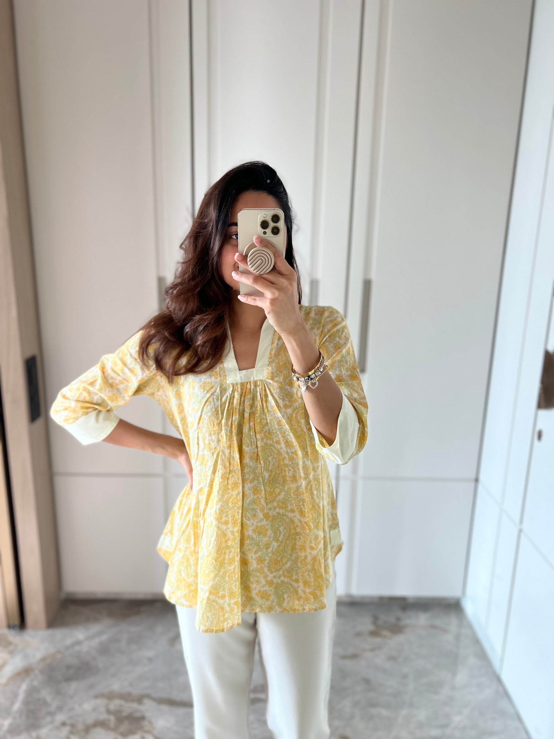 Crafted with care, our Hand Block Short Top features a unique block print for a standout look. Made from 100% Mul, it offers all-day breathability and a soft touch.